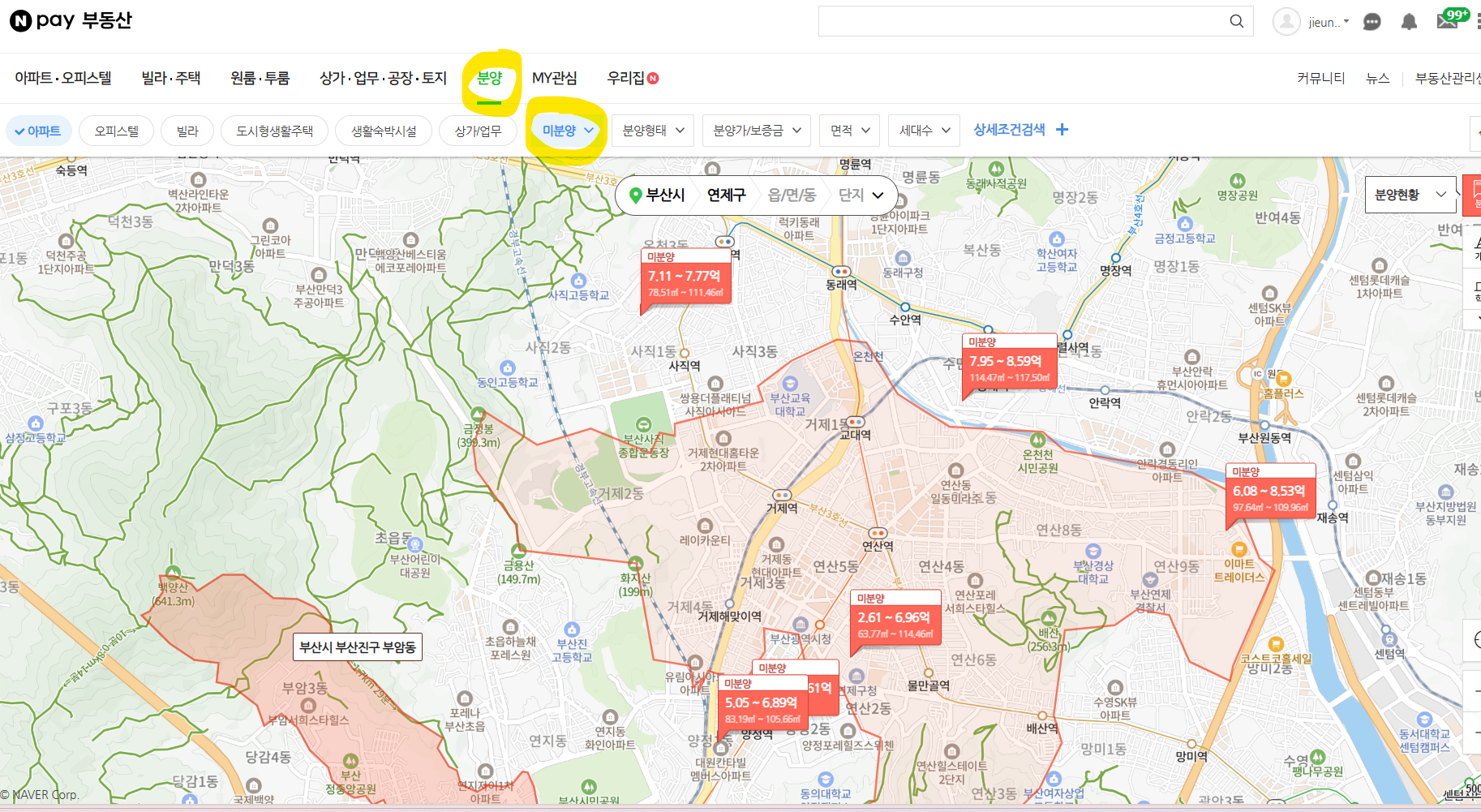 5. 네이버페이부동산- 지도상에 미분양 정보 표시 가능