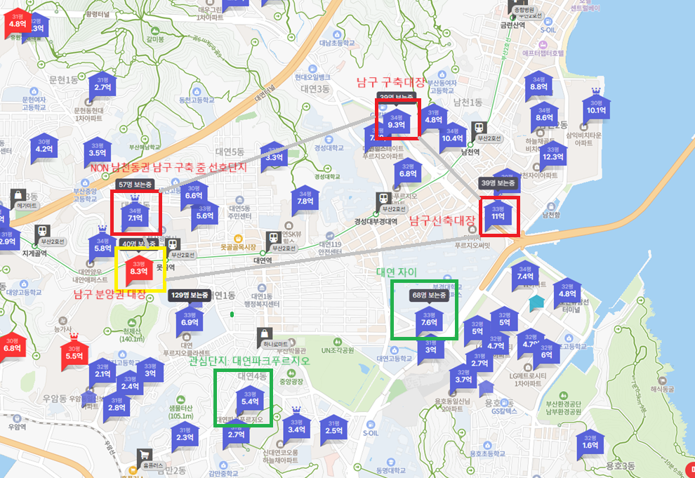 ● 나의 관심 단지 : 대연 자이, 대연 파크푸르지오, 대연 푸르지오클라센트, 대연 롯데캐슬 레전드
